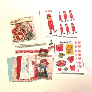 WOW he Be Mine CWR Kit sold out so quickly! I have a few extra items that I have created a mini kit using some of the items. SO Love is STILL in the air with the “Be Mine” Valentine MINI CWR Kit!! I love all things red. pink and hearts and this kit has it all. I wanted to have a more vintage/ old school feel to this kit, the paper-line by Simple Stories was a perfect fit! The star of the kit is this sweet little girl holding her Valentine box wearing her pillbox hat and dressed for the occasion!