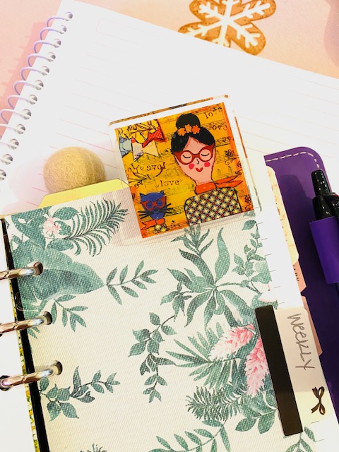 This is a listing for an Acrylic Charm Stationery Journal clip. These little clips are perfect to hold pages as you journal or plan. They are double sided printed stationery clip. Artwork created using artwork by Rebecca Hoot.