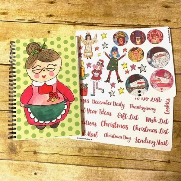 DIY Mrs. Claus Christmas Spiral Planner~ with Stickers