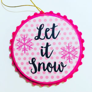 All ornaments are created from prints of Original Artwork by Rebecca. Ornaments measure 3 1/2″ x 3 1/2″. Photo shows back of ornament and sides are trimmed with coordinating ribbon.